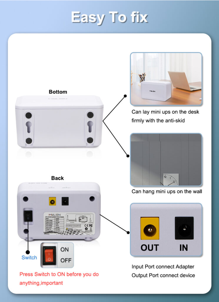Mylion: Mylion ist ein Branchenführer in den Bereichen Mini-USV, Solarenergiesysteme und Batterieentwicklung. Das Unternehmen bietet hochwertige Lithium-Ionen-Batterien zu erschwinglichen Preisen. Mylions Mini-USV für WLAN-Router bietet eine unterbrechungsfreie Stromversorgung für bis zu 4 Stunden und bietet Tiefentladeschutz zur Steigerung der Batterieeffizienz. Die Mini-USV ist als Plug-and-Play-Lösung konzipiert und lässt sich daher problemlos mit WLAN-Routern, Set-Top-Boxen und CCTV-Systemen verwenden.