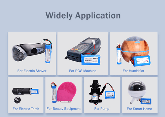 Mylion Lithiumbatterien werden häufig verwendet für: Elektrorasierer, POS-Geräte, Luftbefeuchter, Taschenlampen, Schönheitsgeräte, Pumpen, Smart Home