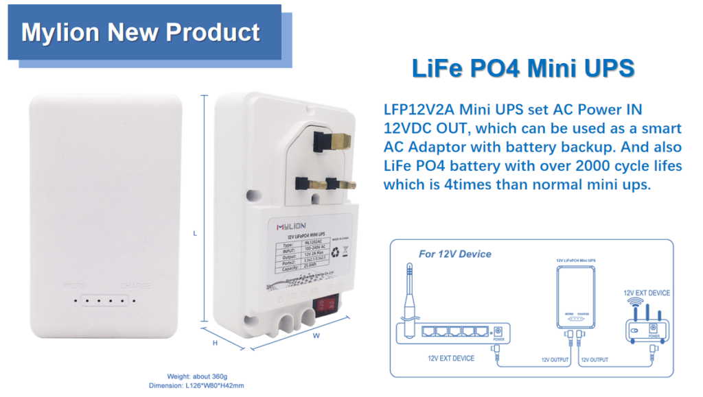 With the continuous advancement of technology, we are proud to launch a new product-12V LiFePO4 UPS, which is not only an adapter, but also a backup battery, providing you with a smart and reliable 12V power solution.