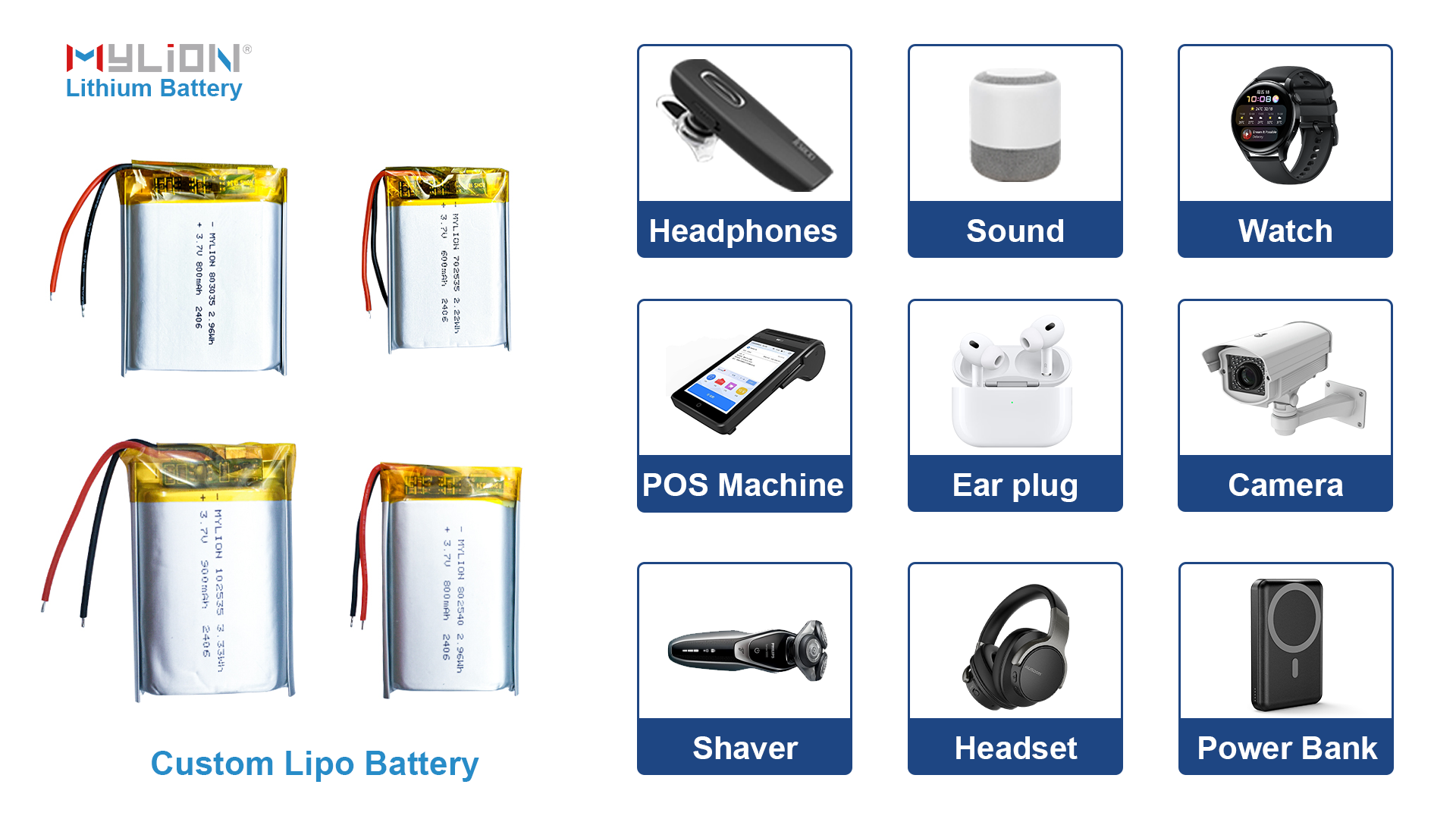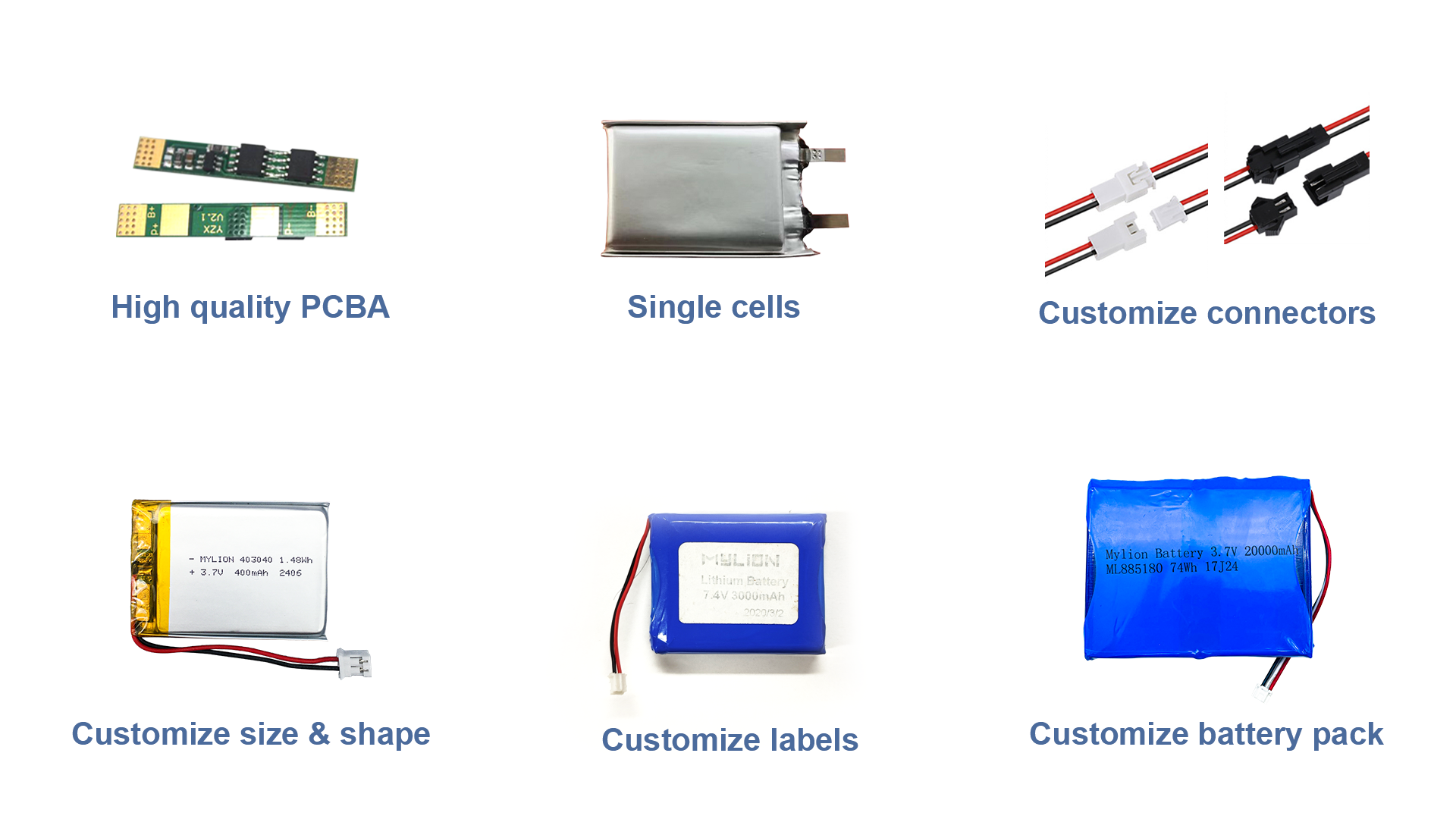 Mylion produce a series battery pack, lithium battery, nimh battery, LiFe PO4 battery, lithium polymer battery, wireless power bank, rc lipo battery, mini ups etc. Widely used for portable electric products, smart AI robot, make people’s life to be convenient, smart.