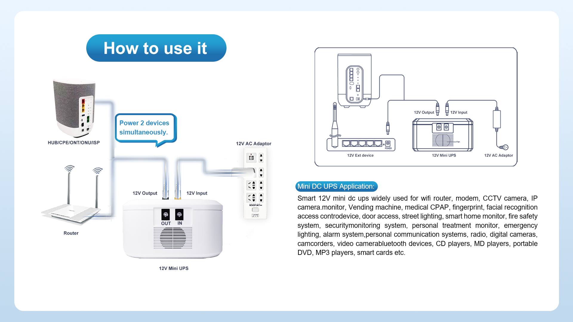 The Mylion MU05W Mini UPS is designed to meet a wide range of applications. Its versatility and reliability make it suitable for the following devices and systems: