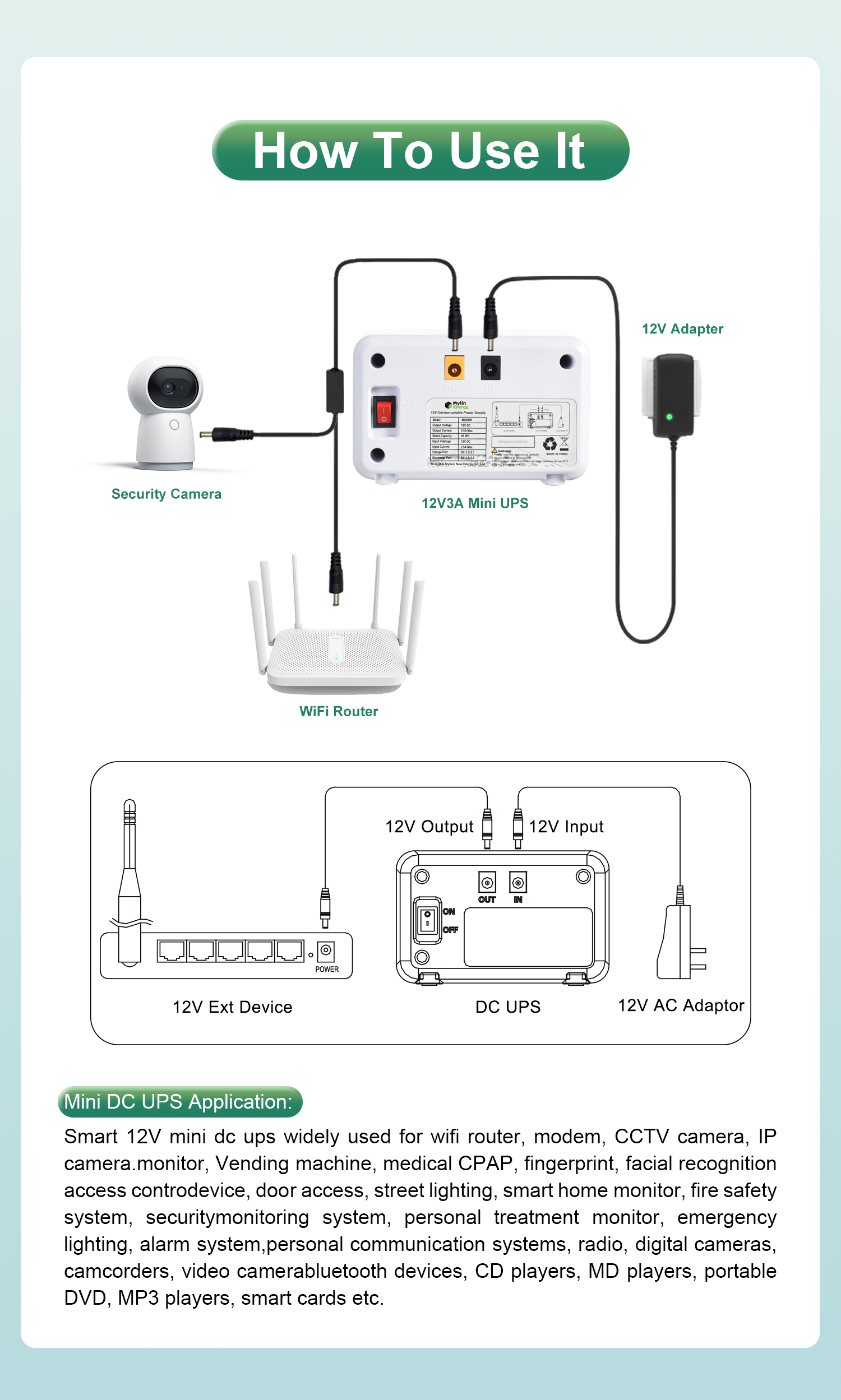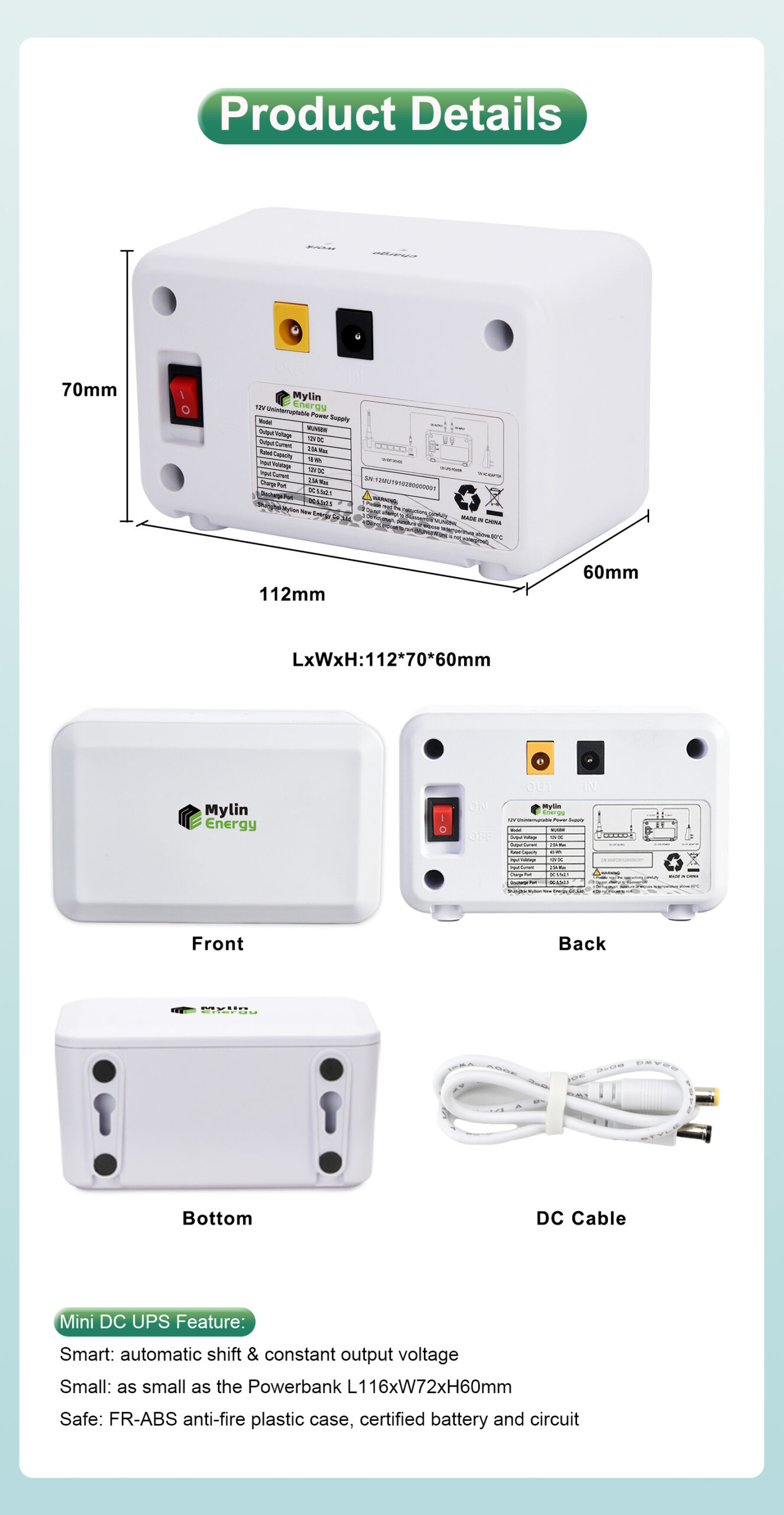 Product name | Mini DC UPS for ADSL Modem WiFi Router CCTV/Security Camera |
