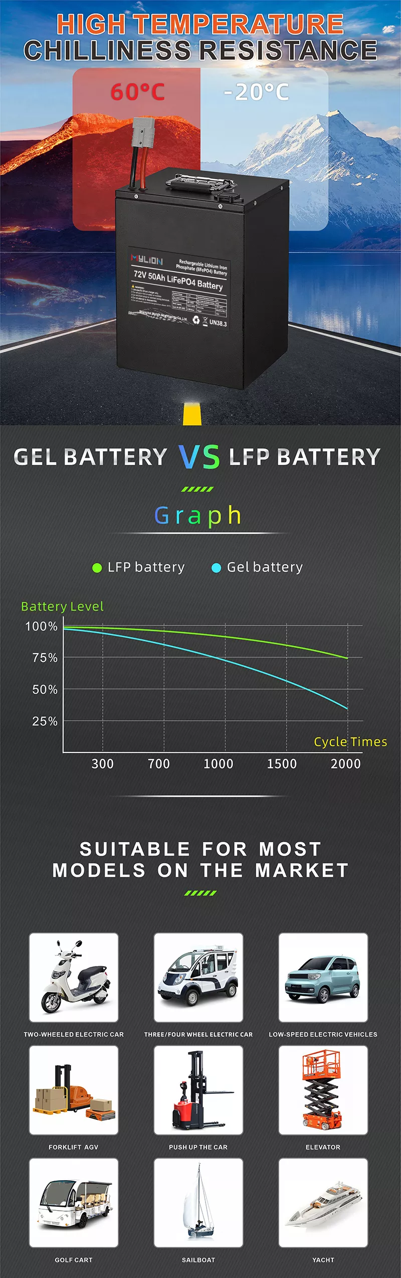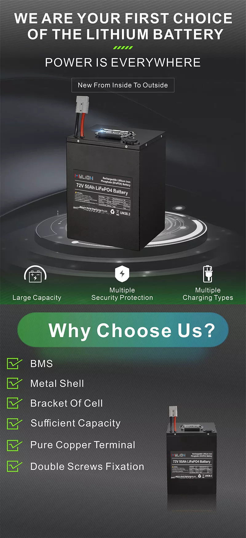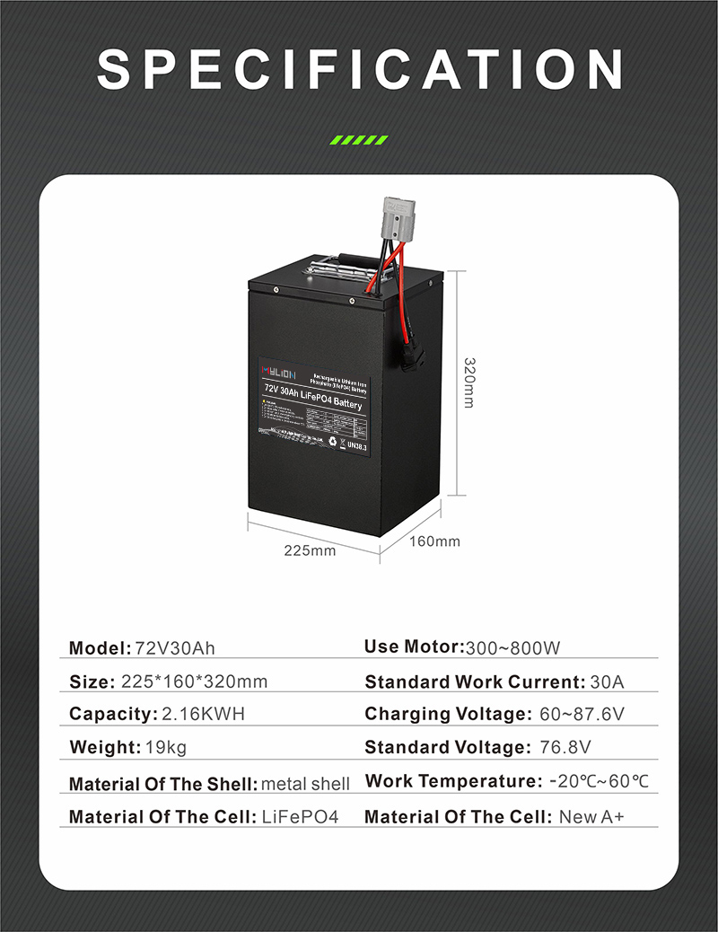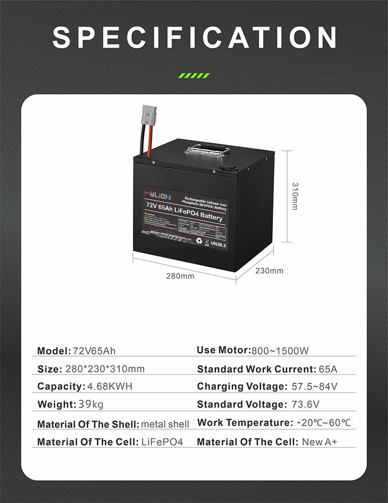 Mylion 72v 22ah 30ah 50ah 65ah lifepo4 power battery pack Lithium Iron Phosphate Batteries Deep Cycle Battery for Electric vehicle