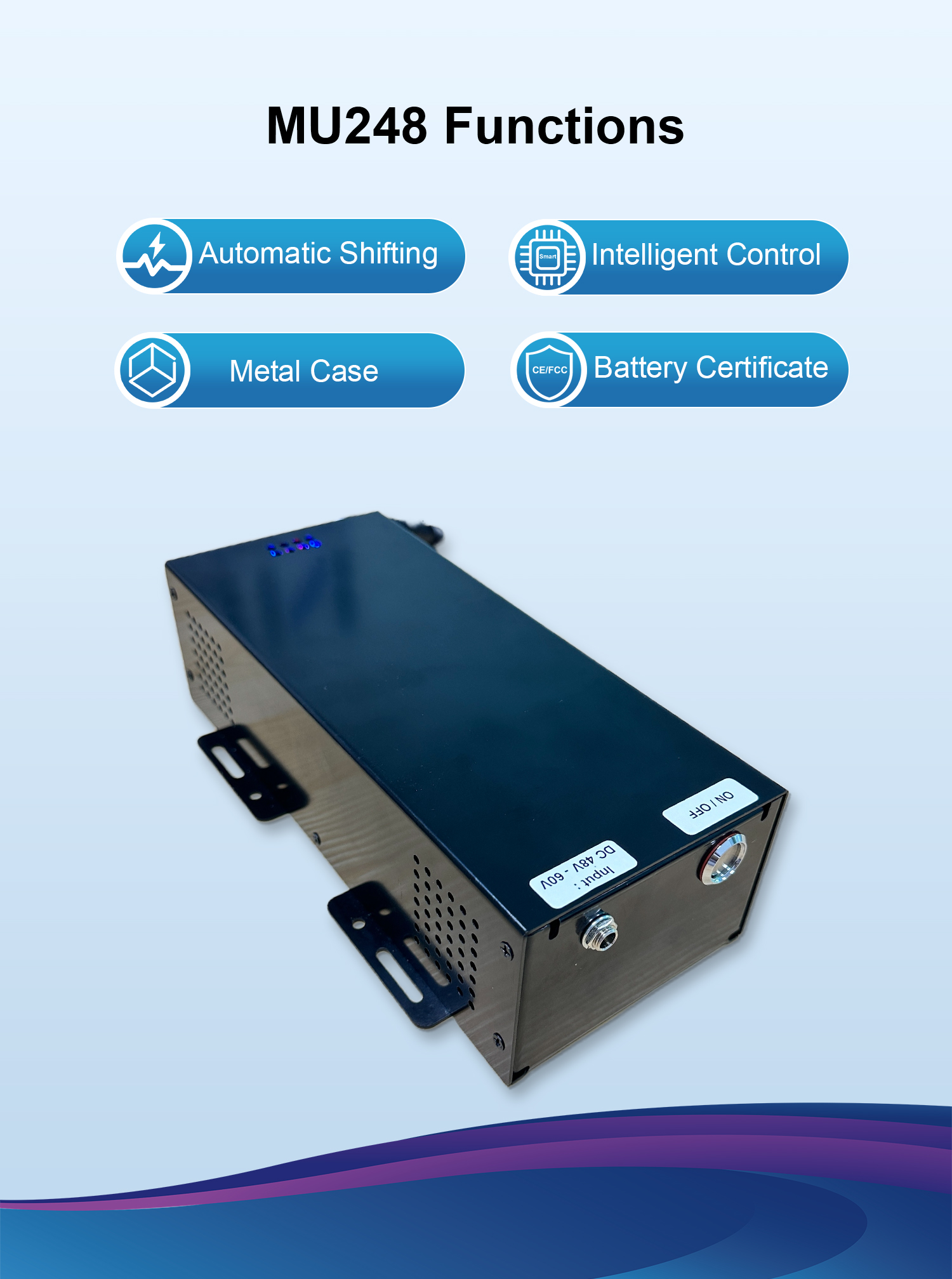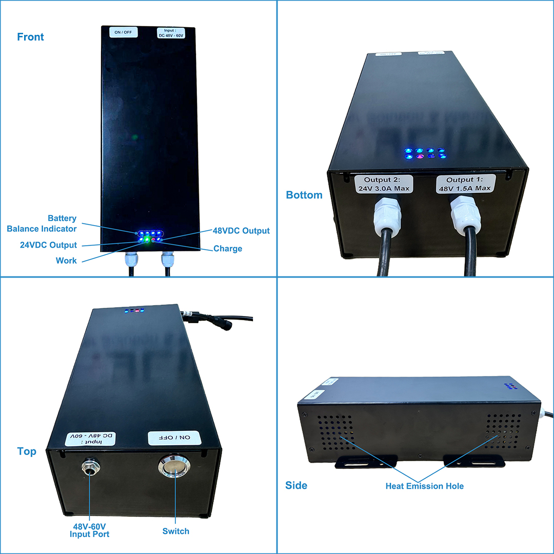 Mylion MU248 Mini DC UPS 24V 3A 48V 1A dual output LiFePo4 Battery Uninterruptible Power Supply for IOT