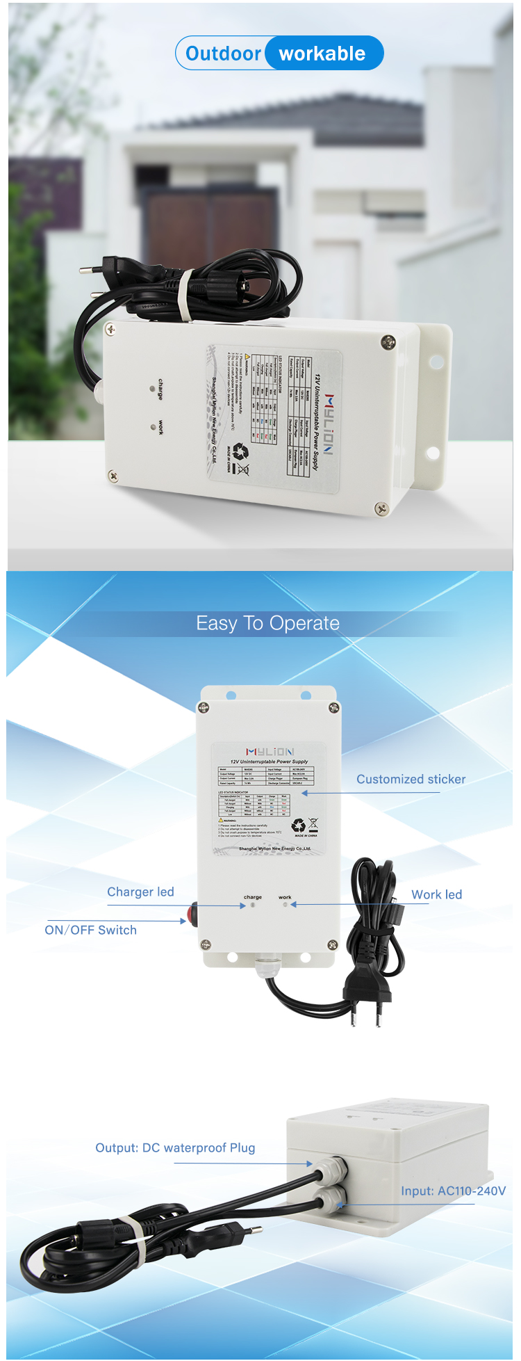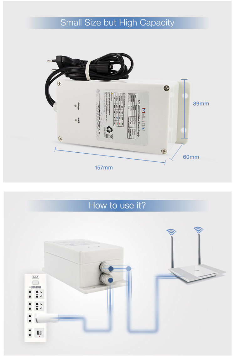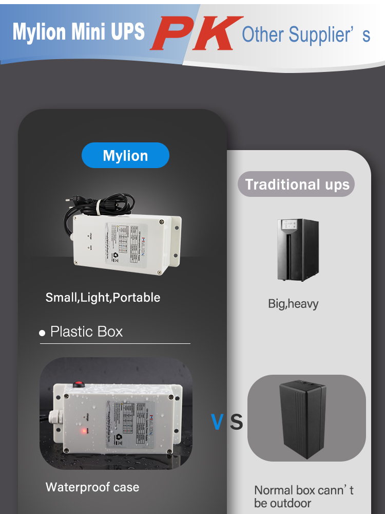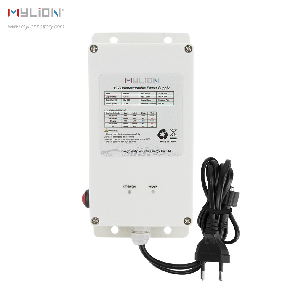 Mylion MA826S 110V-240V Input 12V constant 2A output Mini dc UPS for led street lamp, security/cctv/ip camera, door access, ADSL Modem WiFi Router Wireless AP vending machine, fingerprint etc.