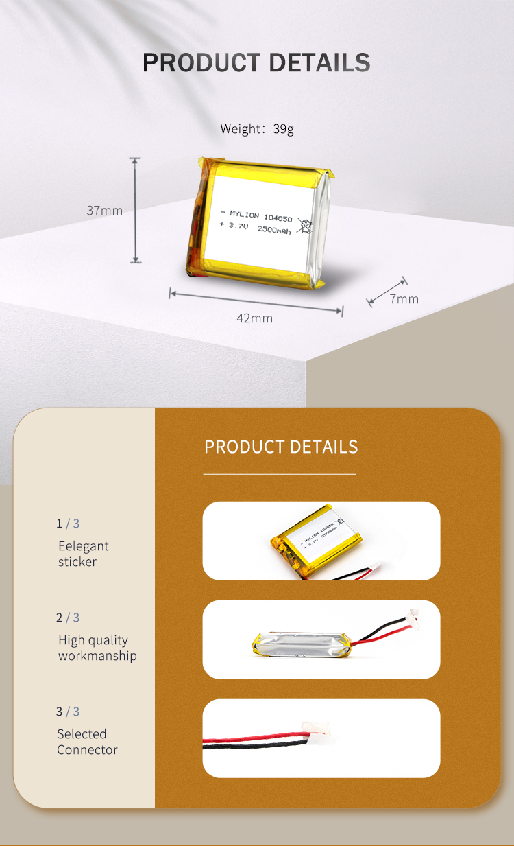Nombre del producto | Batería de polímero de litio 3,7 V 2500 mAh |