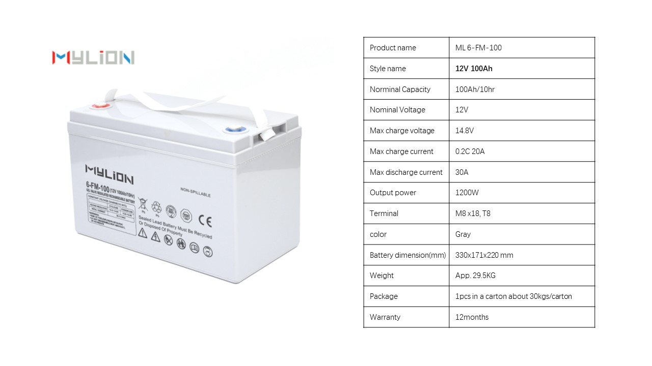 Mylion 12V 100Ah 1200wh Batteria al piombo AGM Batterie solari GEL per sistemi di alimentazione solare