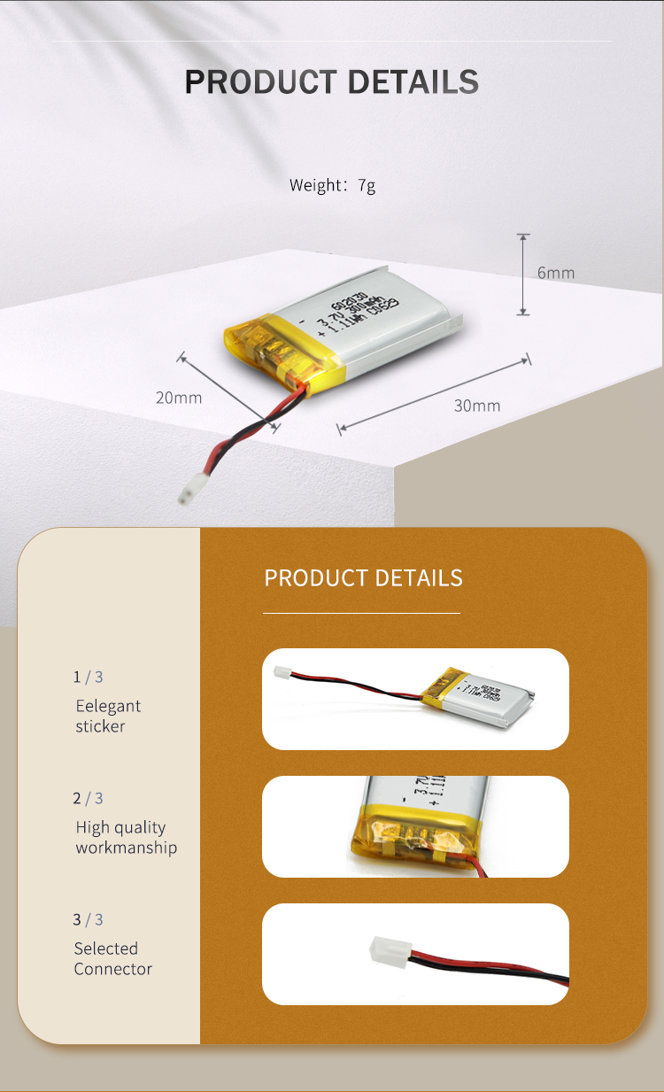 Nome del prodotto: Batteria ai polimeri di litio 3,7 V 300 mAh