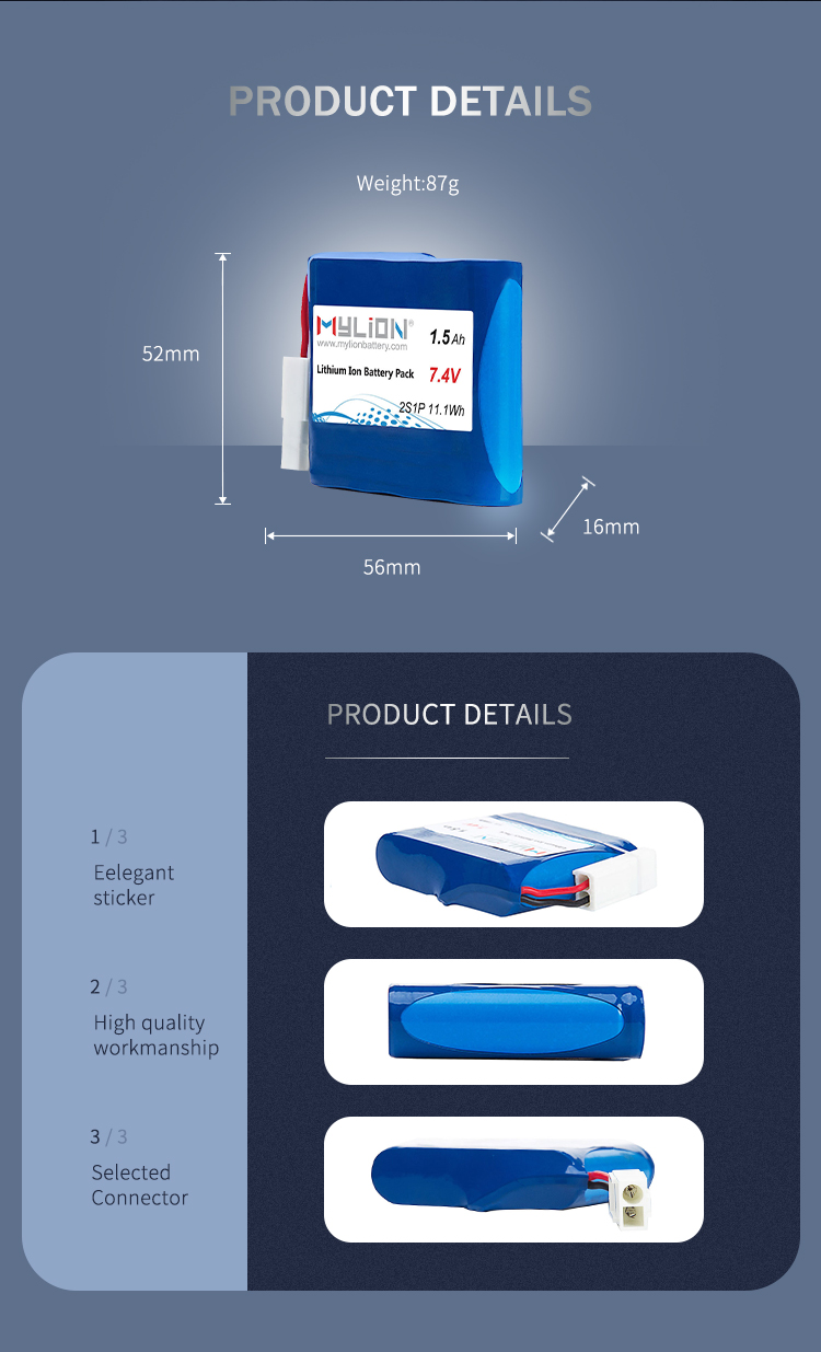 Mylion 7.4v 1500mah 14500 pacco batteria agli ioni di litio