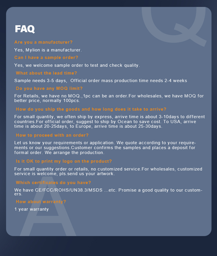 Ciclo di vita capacità di carica e scarica standard ≥80% C5mAh, ciclo di vita ≥600