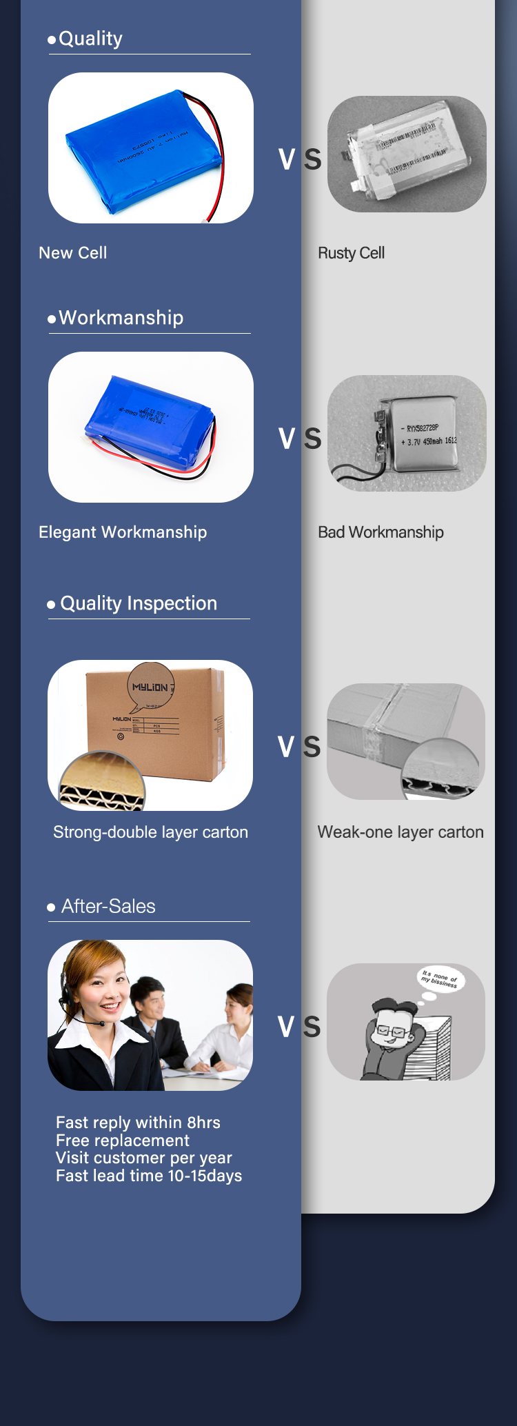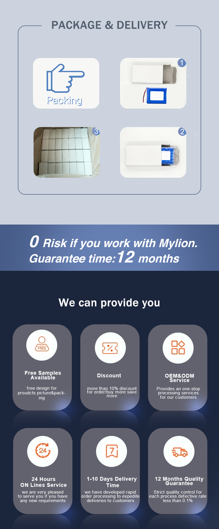 Ciclo di vita capacità di carica e scarica standard ≥80% C5mAh, ciclo di vita ≥600