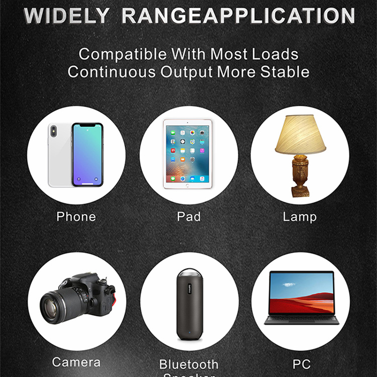 Collegamento elettrodomestici all'uscita del convertitore di potenza consente di utilizzare una varietà di elettrodomestici nell'auto. Gli elettrodomestici che possono essere utilizzati includono: condizionatori d'aria, computer, fotocamere digitali, telecameraS, illuminazione, ventilatori, lettori CD, console per videogiochi, PDA, utensili elettrici, frigoriferi per auto e vari viaggi, campeggio, apparecchi di emergenza medica, ecc.